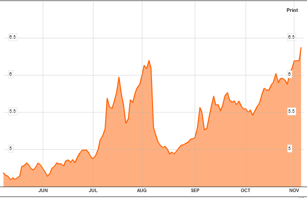 http://zenobiusz.wordpress.com/2011/11/04/sladem-bieda-przyszla-sladem-za-zbytkami-za-nieladem-sugeruje-wydrukowac-i-kolportowac-poki-jeszcze-mozna/ Poniżej przedstawiam wykres oprocentowania 10-letnich obligacji rządu Włoch. Bez komentarza, każdy inteligentny człowiek od razu zrozumie co się zbliża.